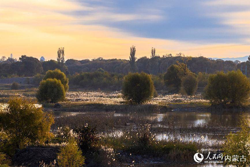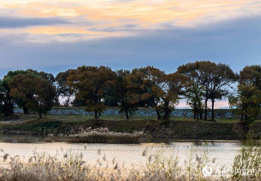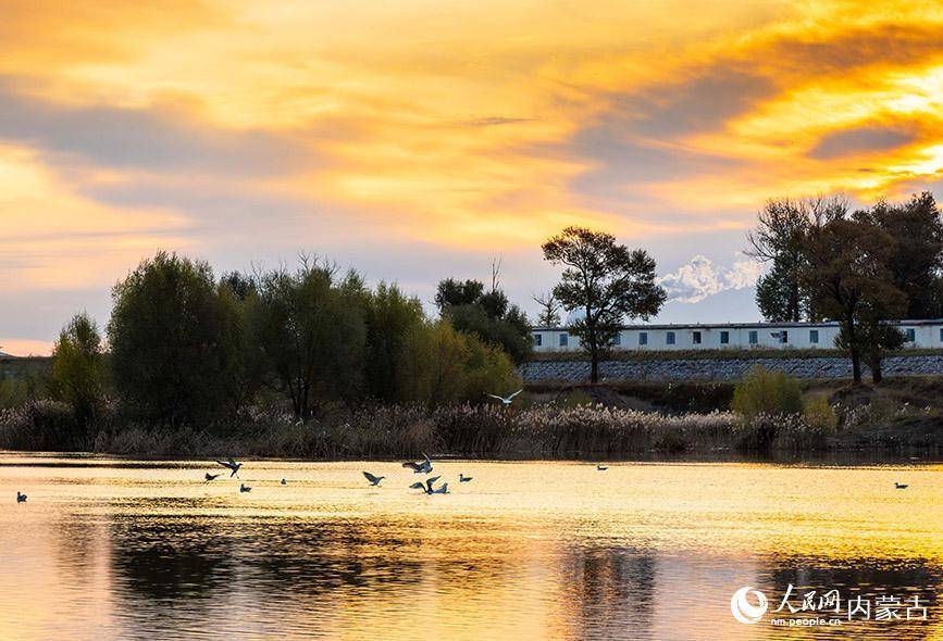 10月20日,呼和浩特市玉泉区大黑河郊野公园秋意正浓、景美如画。丁根厚摄深秋时节的呼和浩特市玉泉区大黑河郊野公园,碧水映红霞,飞鸟舞秋风,勾勒出一幅醉人的秋日画卷。(丁根厚)