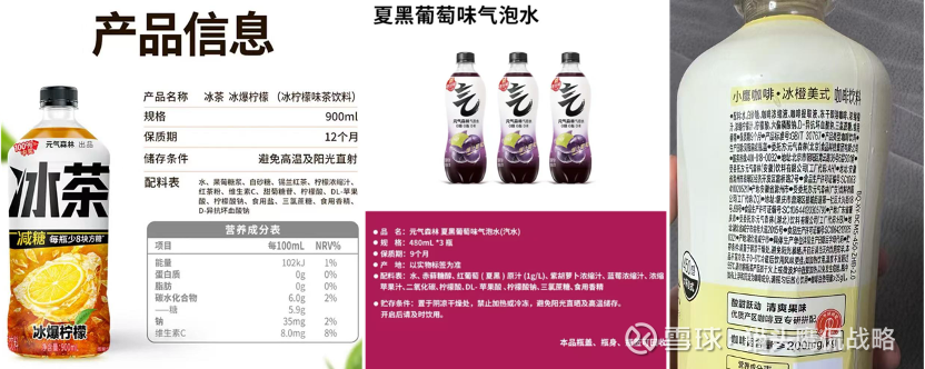 对比“三零”出圈,同样诉求过健康的元气森林产品配料表,感知更明显: