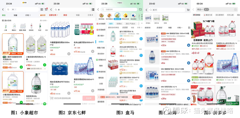 - 图1美团小象超市,同为天然水,5L的2桶10.9元,农夫5L单桶8.5元;